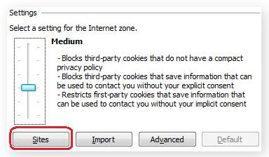 However, this setting is just to prove a point and you do not want to leave it there. The default setting is Medium, so reset it to that and then click on the Sites button.